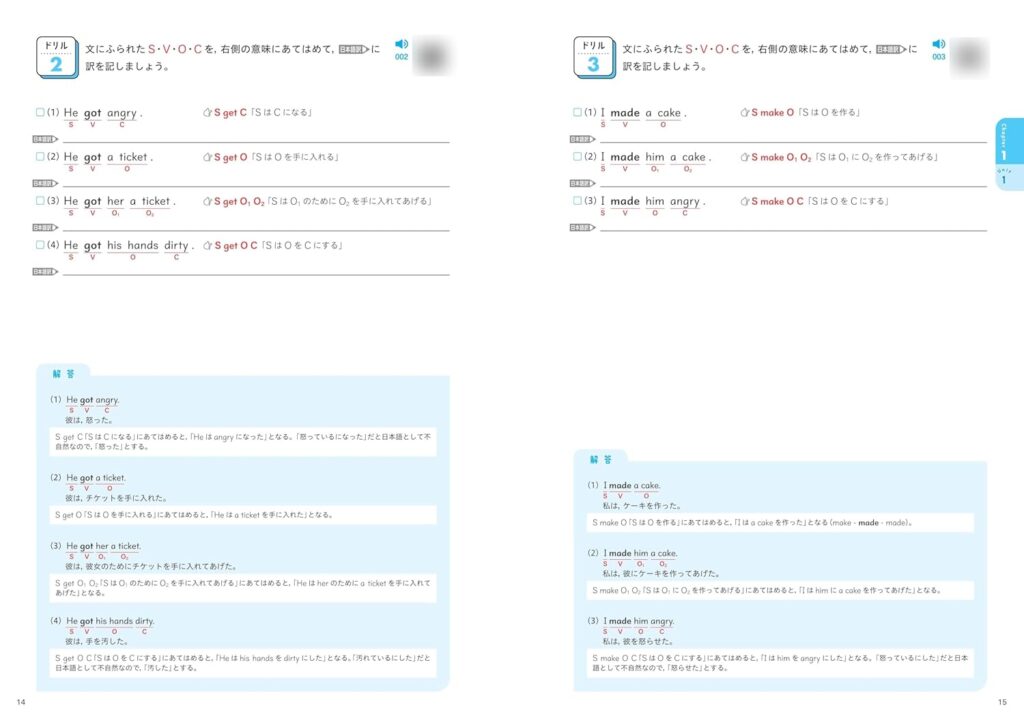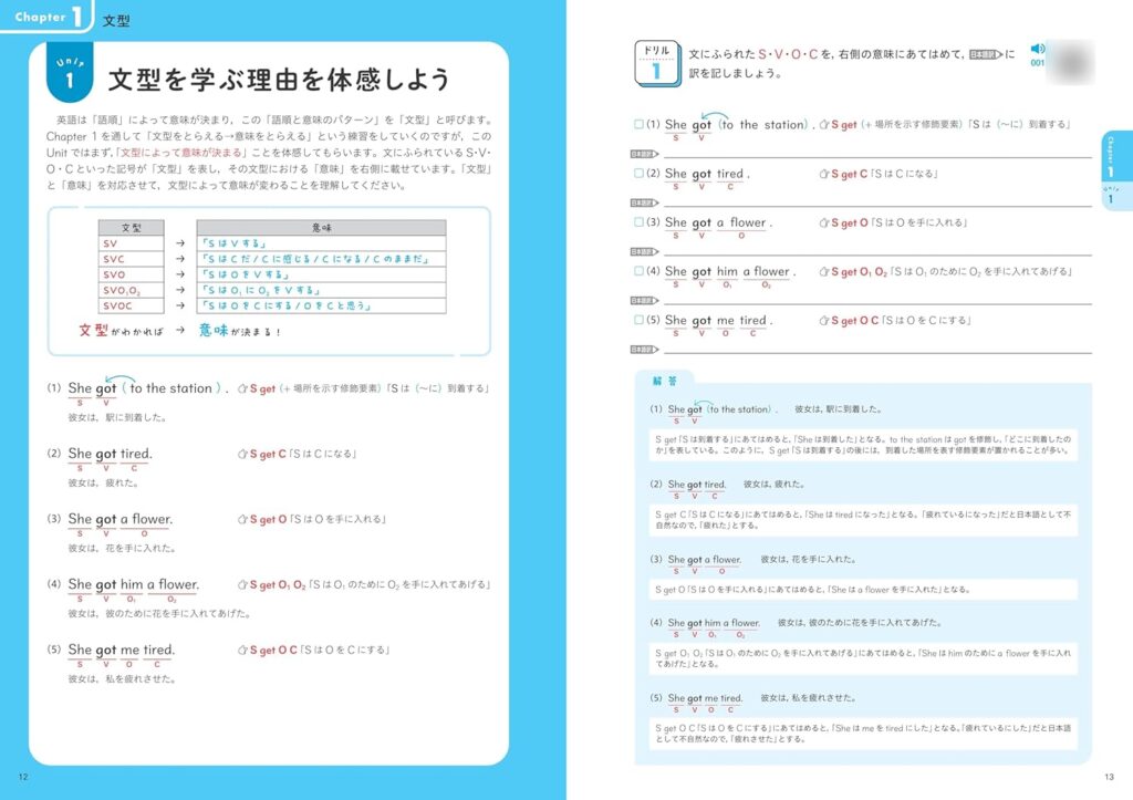 1ユニットあたり4ページ(図解説明+3パートのドリル)で、解説よりも演習に7割のページを割く実践型の参考書です。